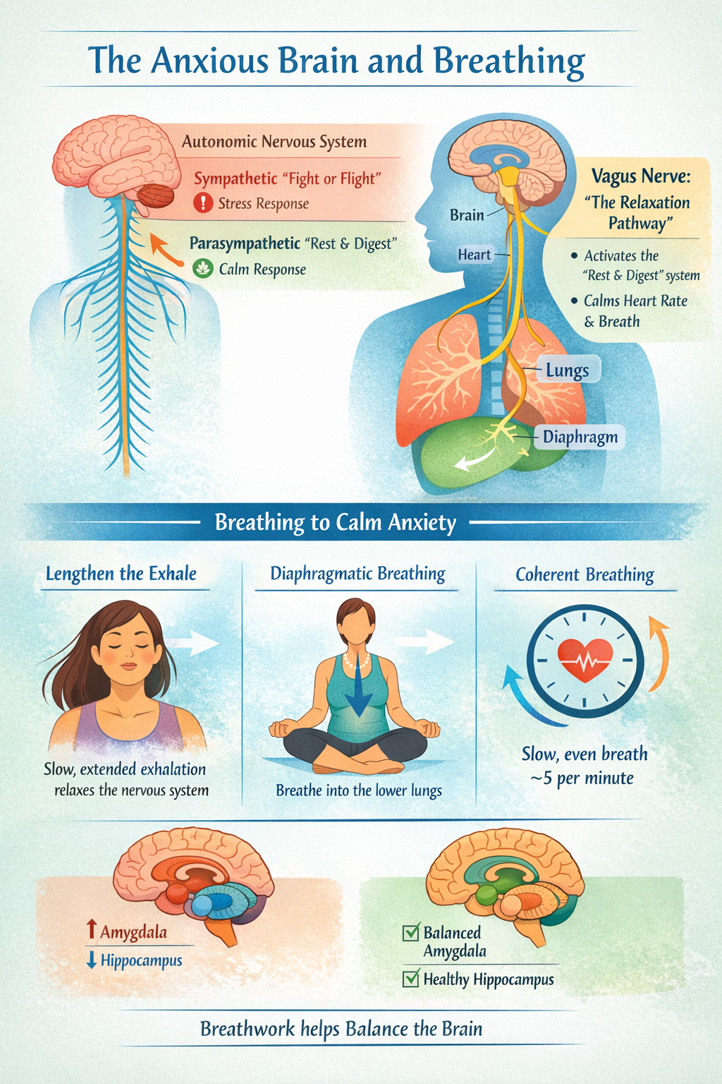 By supporting vagal activation and slowing the nervous system, breathing practices may help promote this calming neurochemical environment.