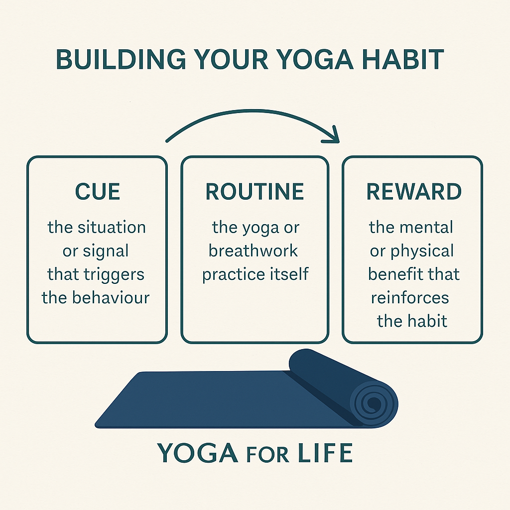A habit is not something you do frequently. It is something you do automatically, triggered by a contextual cue your brain has learned to associate with the action. Yoga researchers, psychologists and neuroscientists have been studying this for years. What they’ve found is simple: repeat a behaviour in the same context and your brain will learn to do it without asking your permission.